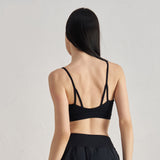 The thin, adjustable straps allow for a personalized fit, making it perfect for low-impact activities like yoga, pilates, or casual wear. Its gathered front design offers a flattering, slightly padded look, while the breathable, stretchy fabric ensures all-day comfort. Whether you're hitting the gym or lounging at home, this sports bra combines functionality with fashion.