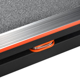 0-9MHP Digital Quick Speed Control Function With the quick touch of a button you can adjust speed to manipulate workout intensity from a light warm up to heavy sprinting 3 slope adjustments 3 manual incline to personalize your workout preference and intensity 6 shock absorber 3 shock absorbing cushions on each side for better workout experience and less noise 16.5" Wide Tread Belt Excellent tread belt to provide safety by avoiding slip and scientific exercise experience 3 Modes and 12 Automatic Workouts Programs 3 Modes and 12 Automatic Workouts Programs at your choice to start exercise in an easier way Easy-Access Handlebar Controls Speed adjustment and start/stop buttons are located on both handles within easy and fast reach Integrated Tablet Holder and Drink bottle holder Integrated tablet and cup holder to place your electronic devices and drinking bottle to make your workout time more fun and convenient Space Saving Design Foldable design to save considerable space when you're not exercising Safety Emergency Stop Key Safety emergency stop key in place to prevent you from any possible accidents Transportation Wheels Transportation wheels for you to move around the treadmill easily without doing harm to your floor EKG Grip Pulse Sensor Sensors on both handles help you to monitor and maintain your target heart rate for optimal fitness results Easy Assembly Machine comes fully with all required tools and instructions and assembled, simply unfold it and tighten the screws