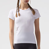 The round neckline offers modest coverage while the slightly tapered waist subtly accentuates your natural curves. Flatlock stitching eliminates chafing, and the tagless label ensures irritation-free wear. Unlike standard cotton tees that cling when wet, our quick-drying fabric disperses sweat instantly—so you stay cool during hot flows and recover faster between sets.