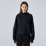 Experience ultimate comfort and style with our New Women's Zipper Hooded Sports Jacket. Stay warm and trendy with the added fleece lining while effortlessly looking chic with the loose, casual fit. Ideal for yoga, workouts, or simply lounging in the colder seasons. Get yours now!