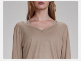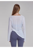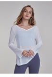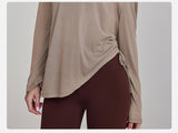 The SerenityFlow Tee combines elegance and functionality with its pleated design, drawstring waist, and long sleeves, offering a comfortable, versatile option for yoga, casual wear, or autumn outings, all while ensuring breathability and a flattering fit.