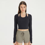 Trendy Halter-Neck Long-Sleeve Yoga Top – Sculpting, Ultra-Soft, and Fashion-Forward